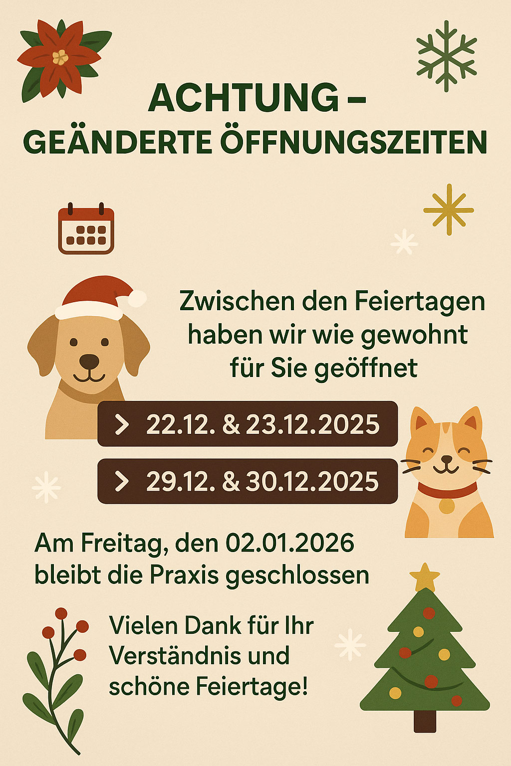 Zwischen den Feiertagen ist die Praxis zu den regulären Zeiten geöffnet!